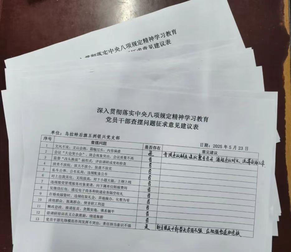 會(huì)上,大家對(duì)標(biāo)習(xí)近平總書記關(guān)于加強(qiáng)黨的作風(fēng)建設(shè)的重要論述和重要指示批示精神,對(duì)照《中央八項(xiàng)規(guī)定及其實(shí)施細(xì)則精神》,結(jié)合各自工作實(shí)際,堅(jiān)持實(shí)事求是和問題導(dǎo)向原則,從思想引領(lǐng)、遵規(guī)守紀(jì)、作風(fēng)建設(shè)、以學(xué)促干以及工作成效等方面做了全面查擺和自查自糾。同時(shí)緊扣中央八項(xiàng)規(guī)定內(nèi)容,從文風(fēng)會(huì)風(fēng)、推諉扯皮、擔(dān)當(dāng)作為、公款旅游、隔空送禮等方面編制、印發(fā)了《黨員干部查擺問題征求意見表》,認(rèn)真聽取黨員群眾的意見和建議。